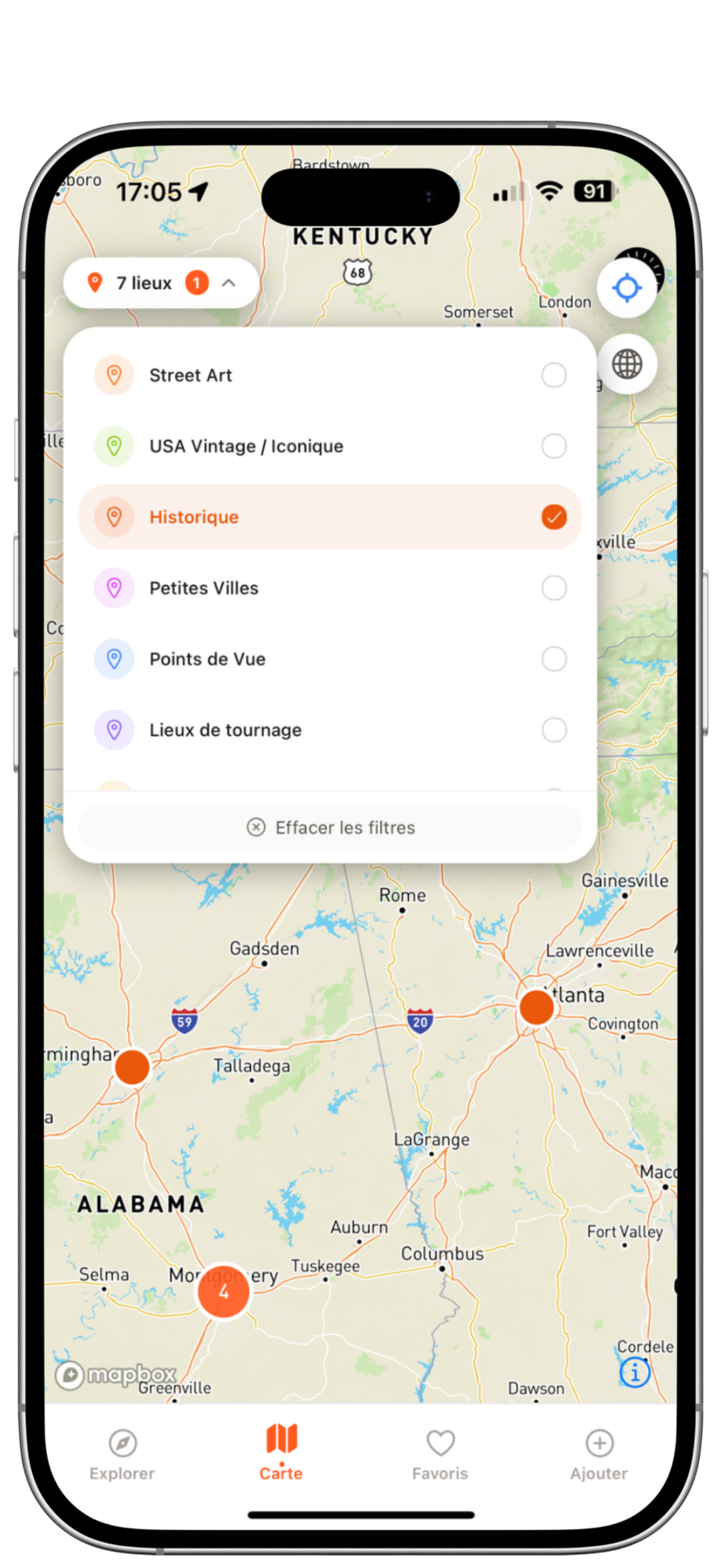 Oubliez les guides classiques. Repérez les lieux décalés et authentiques des États-Unis, planifiez votre itinéraire et partagez vos découvertes avec la communauté francophone.